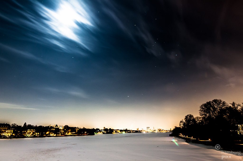Mond über der Außenalster